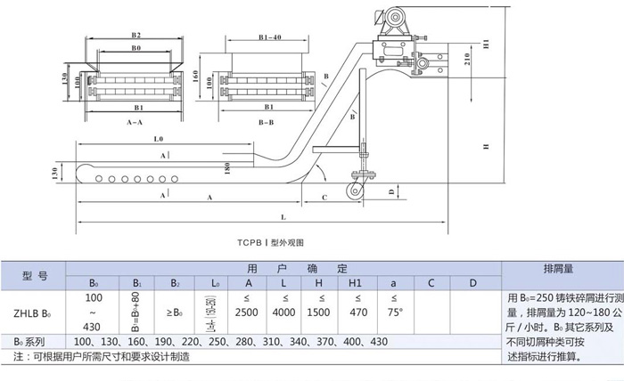 1、根據安裝空間的大小確定排屑機的寬度B1,高度需大于130mm