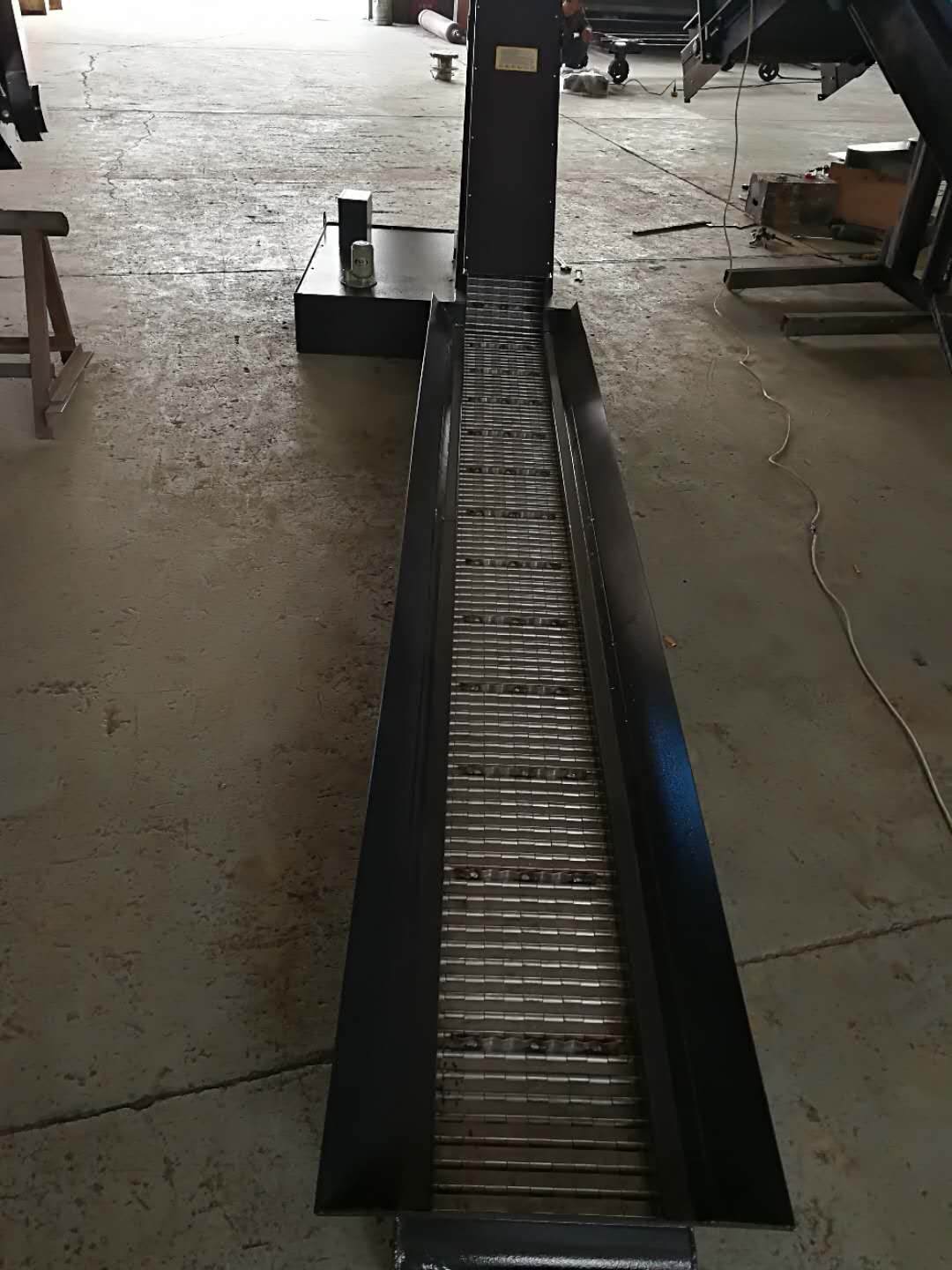 4、我公司生產的鏈板排屑機廣泛應用于車床、鉆床、龍門銑床、鏜床、加工中心及其他專用機床,操作簡單、運行可靠、拆裝方便、維修容易。亦可與其它排屑裝置聯合使用,形成各種形式排列的切削處理系統。排屑長度可達40米。